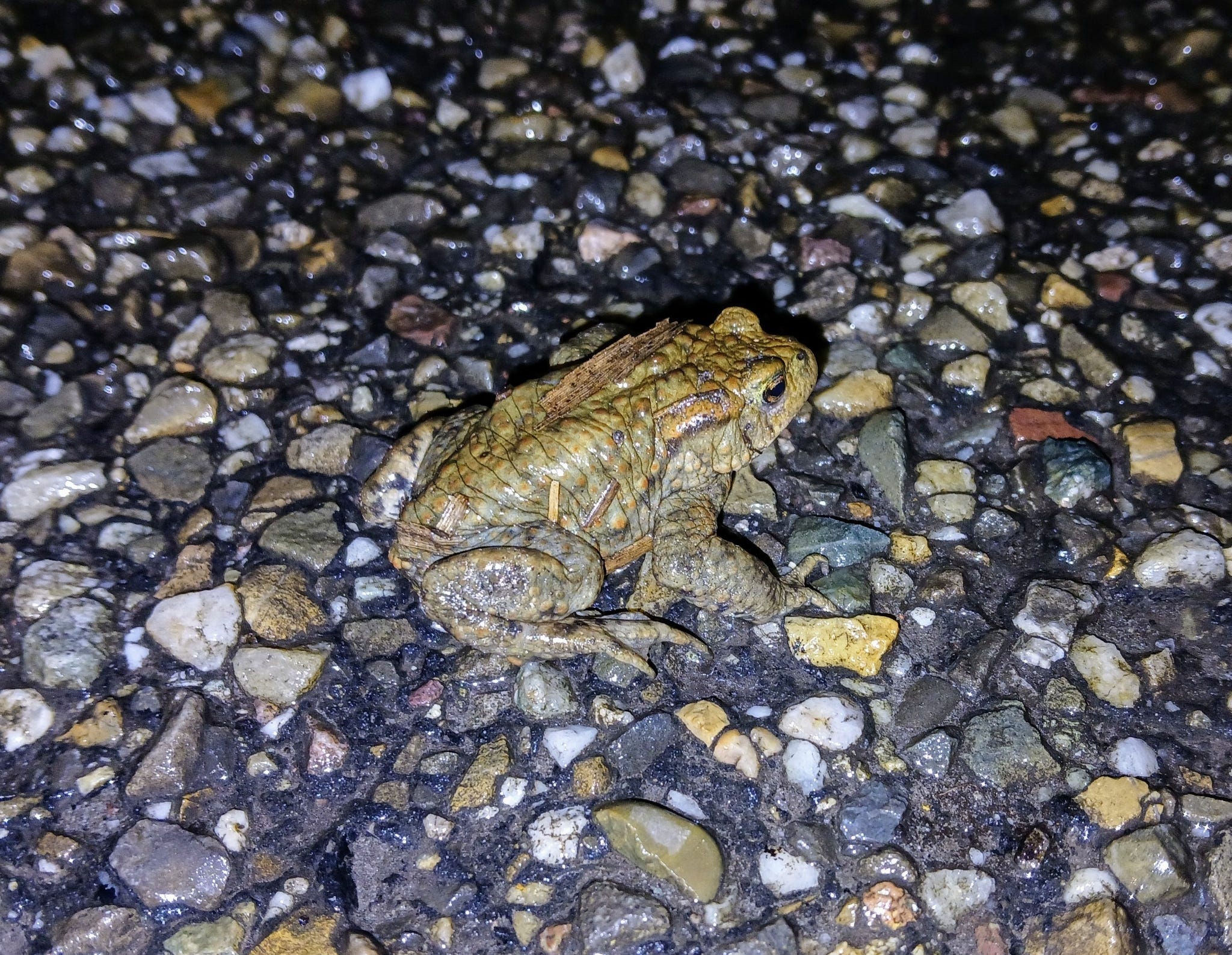Here, in the Netherlands, the common toad is also quite abundant and I’ve seen them often on roads, as well as simply hiding behind the rubbish bin in my front yard. The one in the photo below was photographed near the town of Harkstede, on a moist night when the headlights of our car offered us several sightings of common toads, each time giving me and the kids the opportunity to jump out of the car and take a closer look at such peculiar animals. Try going out at night when the conditions are right for amphibians, and you may well get up close and personal with the common toad.